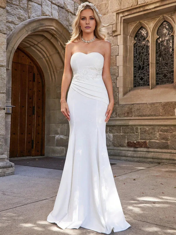 Mermaid Flower Stickers and Ground length Wedding Dresses