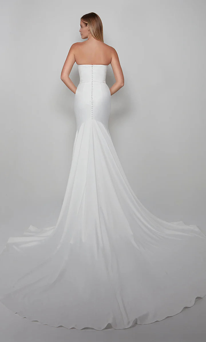 Perfect satin strapless mermaid backless satin bread button wedding dress