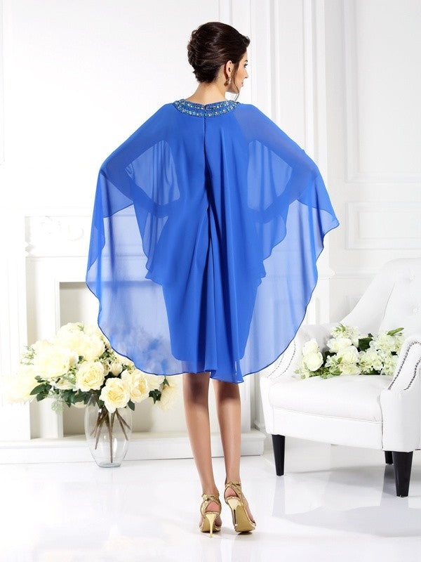 Sheath Chiffon Bateau 3/4 Sleeves Knee-Length With Beading Mother of the Bride Dresses