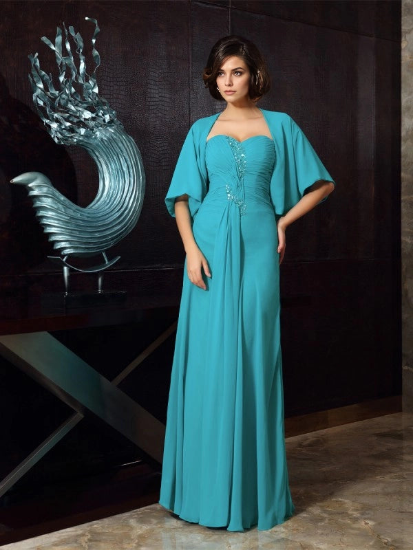 Sheath Chiffon Sweetheart Sleeveless Floor-Length With Beading Mother of the Bride Dresses