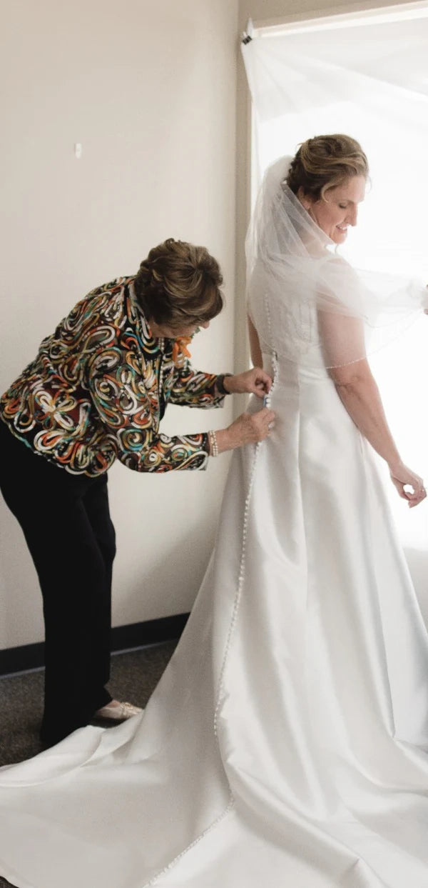 Simple Bateau Satin Sleeveless Wedding Dresses with Beading