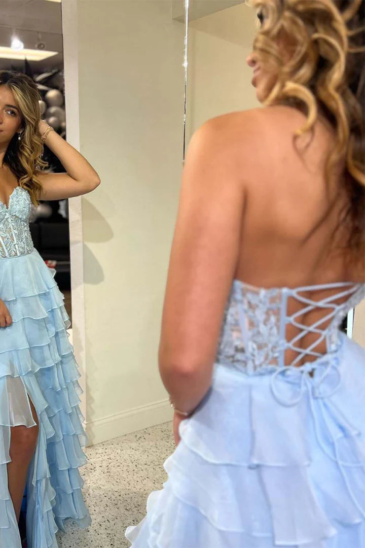 Strapless strapless strapless tight fishbone corset ball dress with slit