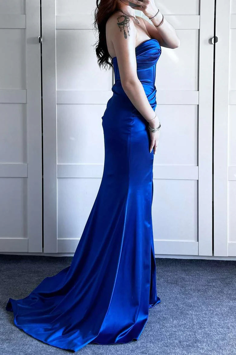 Strapless Sweetheart Pleated Sleeveless Mermaid Long Prom Dress with Slit