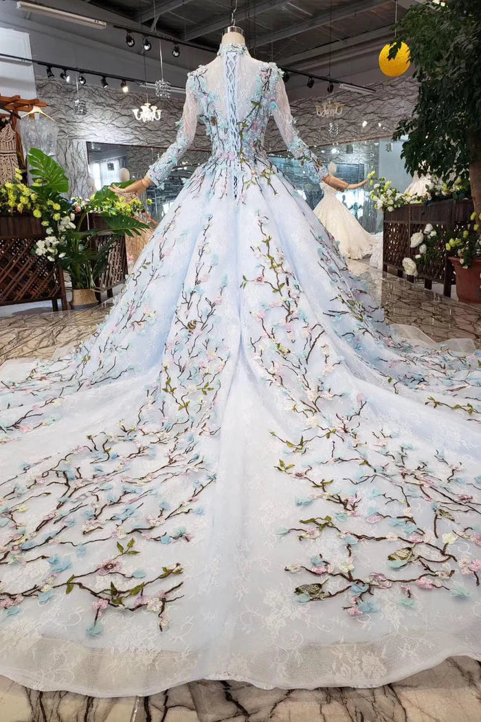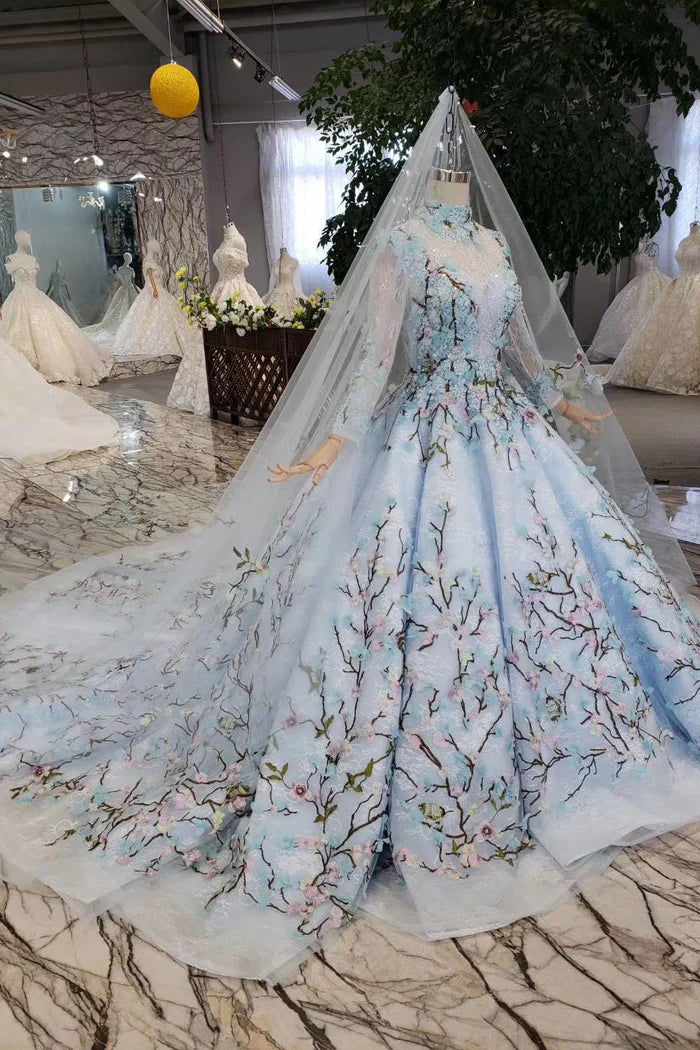 Stunning Long Sleeves Tulle Wedding Dresses with Embroidery Bridal Gown