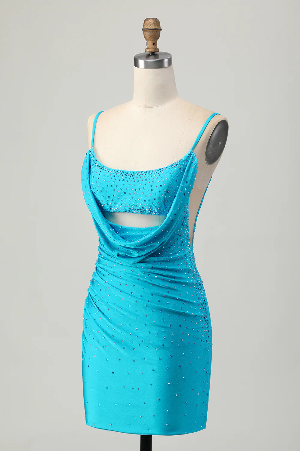 Tight Cut Out Short Blue Homecoming Dress with Beading
