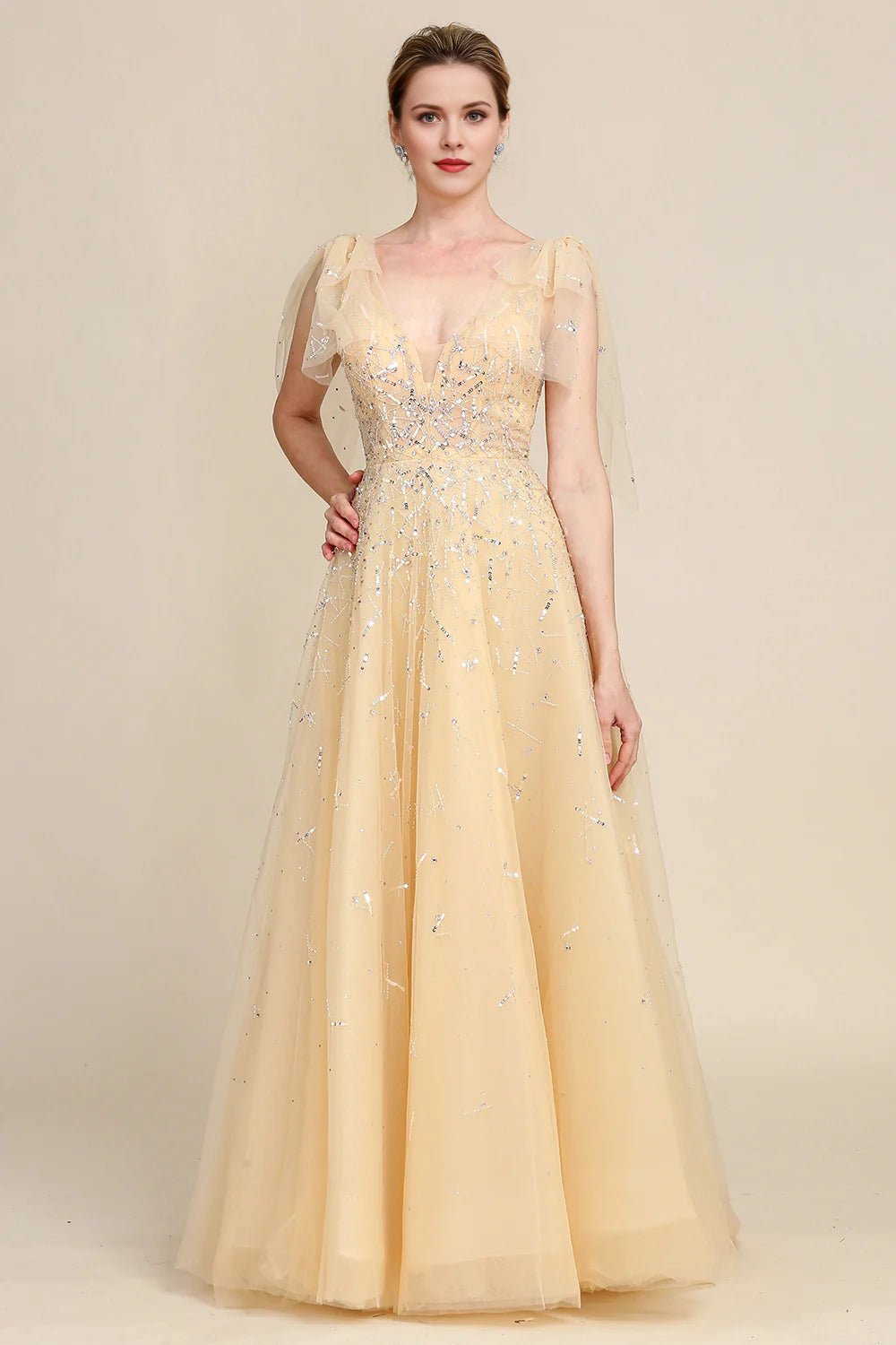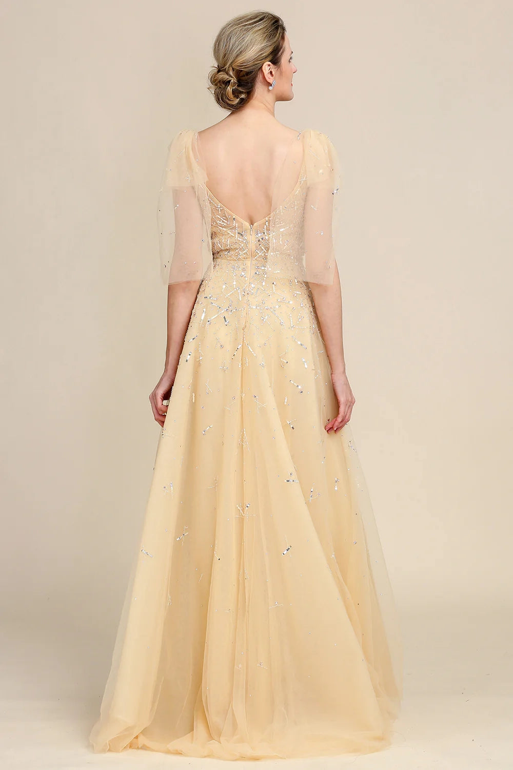 Yellow A Line Beading Sparkly Mother Of Bride Dress